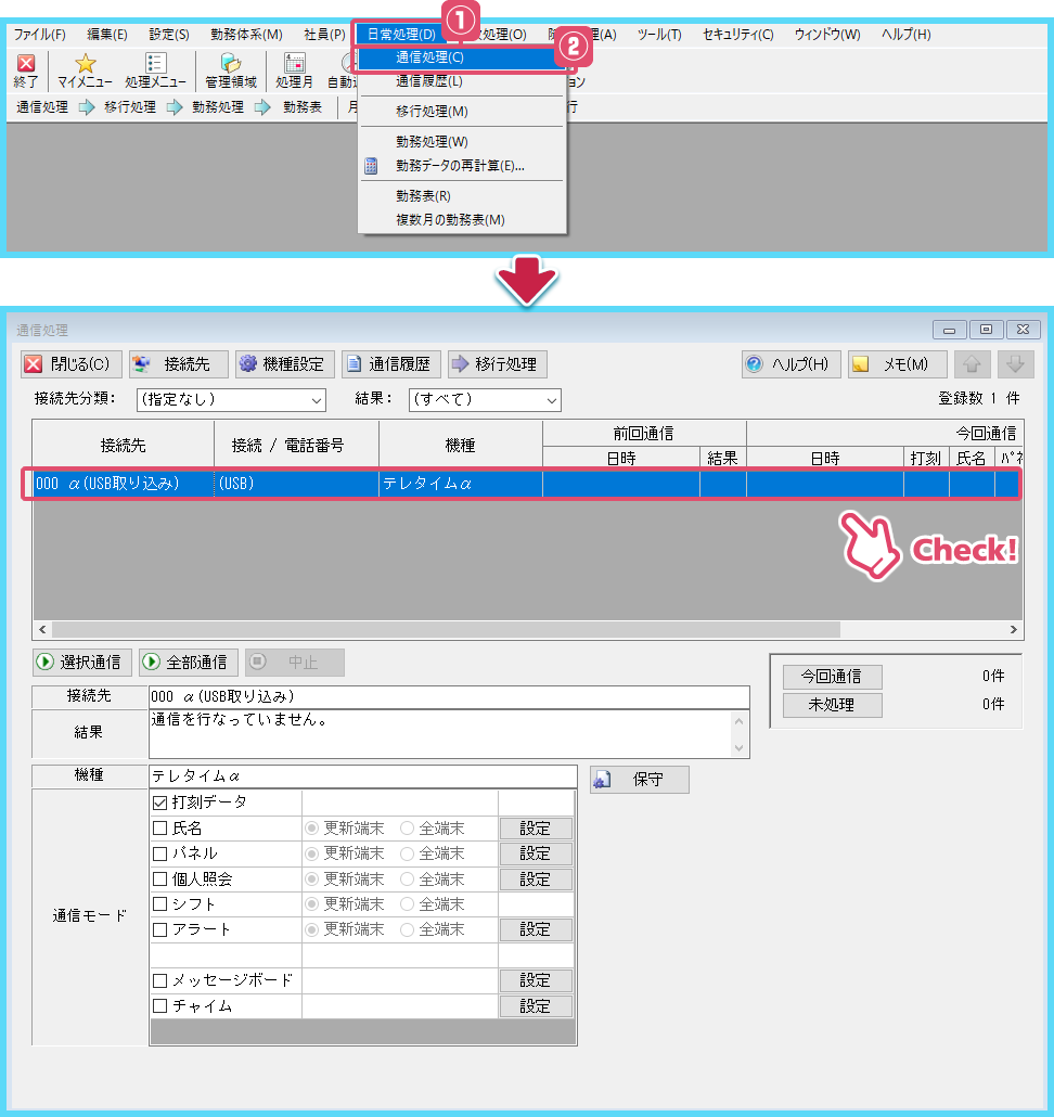 STEP1 テレタイムαでUSBメモリに打刻データを書き込む