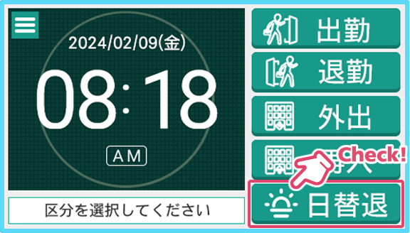 - タイムレコーダーで、設定が反映されたかご確認ください。