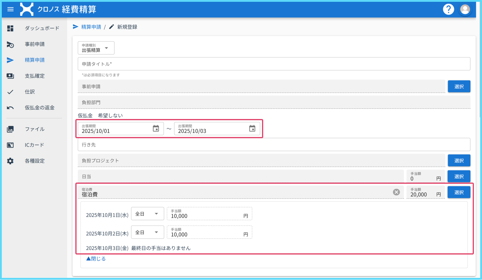 明細で使用する領収書などとは用途の異なるファイルを最大20MBまで申請時に添付することができます。