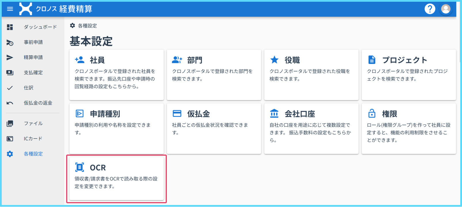 各種設定>申請種別から各申請種別を利用するか設定をすることができる機能を追加しました。