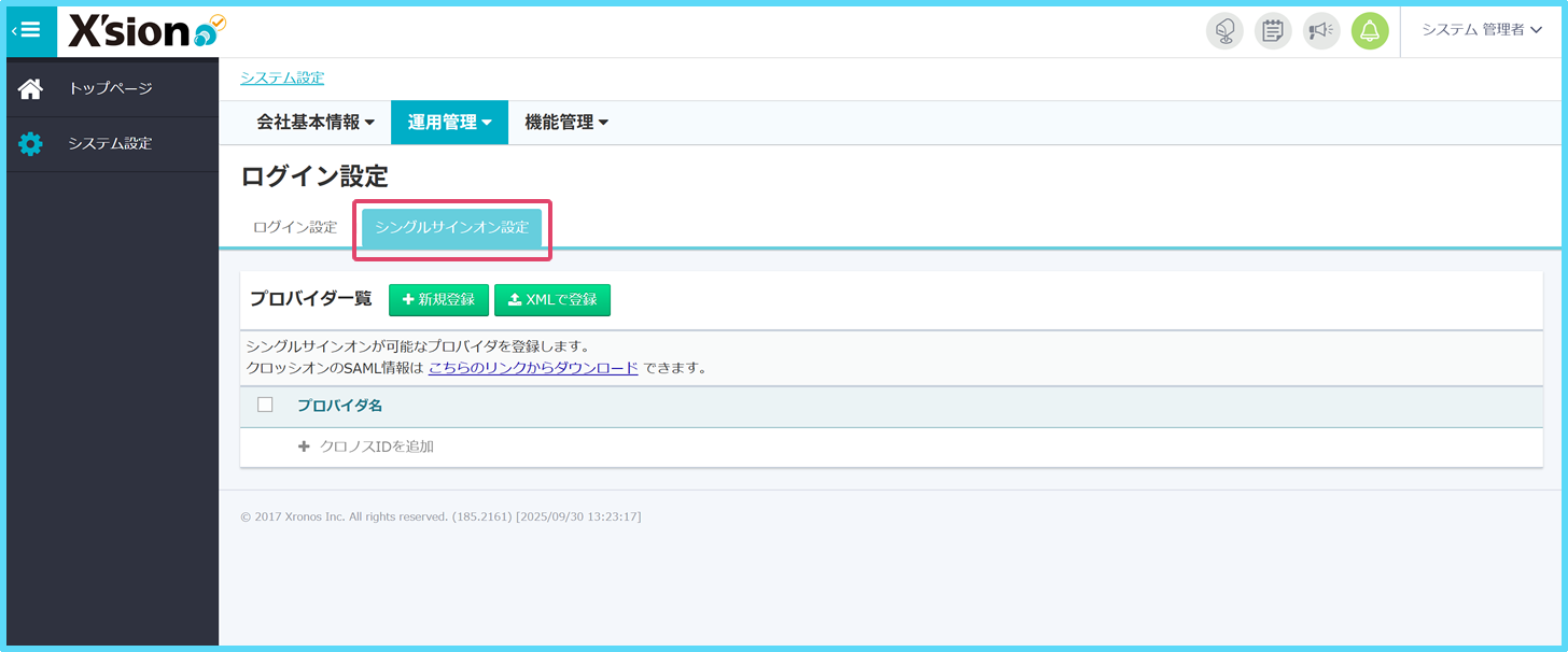 システム設定 > ログイン設定に「シングルサインオン設定」タブを追加しました。